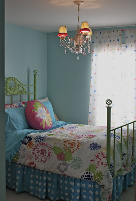 Bedding: Duvet and pink pillow from Ikea. Turquoise dot sheets from Target.com. Pink chenille body pillowcase from Walmart.
